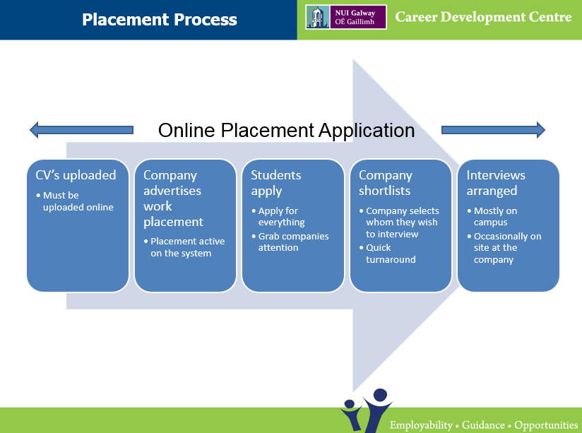 Ba cheart gur eispéireas spreagúil agus taitneamhach é dul ar shocrúchán oibre, a thabharfaidh do dhúshlán agus a thabharfaidh deis d’fhorbairt phearsanta. Cé go bhféadfadh cuma scanrúil a bheith ar an bpróiseas, is é an dea-scéala ná go n-oibríonn an tIonad Forbartha Gairmeacha go dlúth leis na Seirbhísí Tacaíochta Míchumais in Ollscoil na Gaillimhe chun a chinntiú go dtugtar tacaíocht do mhic léinn faoi mhíchumas, a bhfuil riochtaí sláinte coirp nó meabhairshláinte leanúnacha, nó deacrachtaí foghlama ar leith acu.