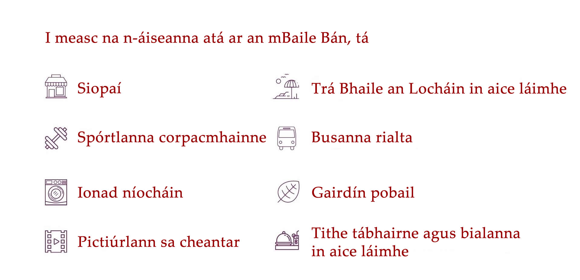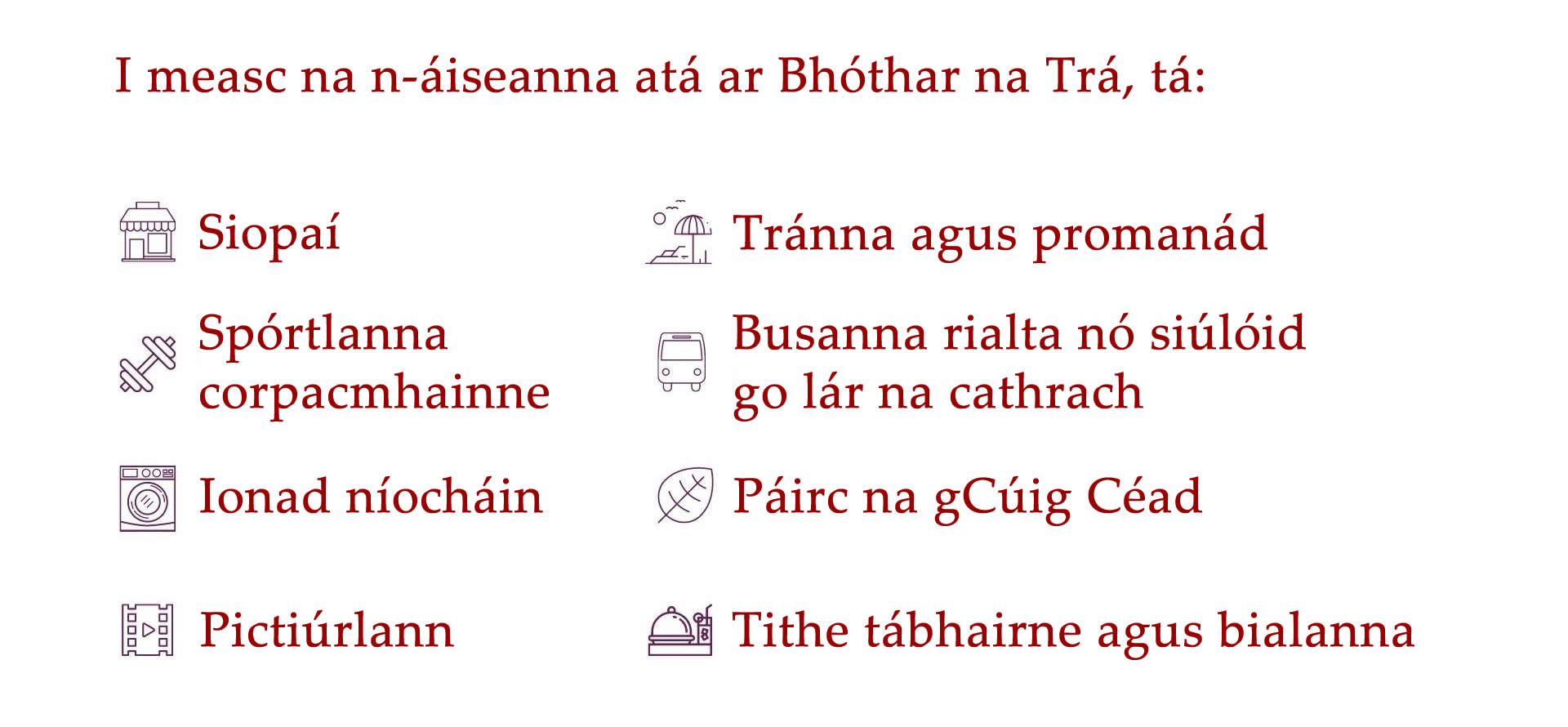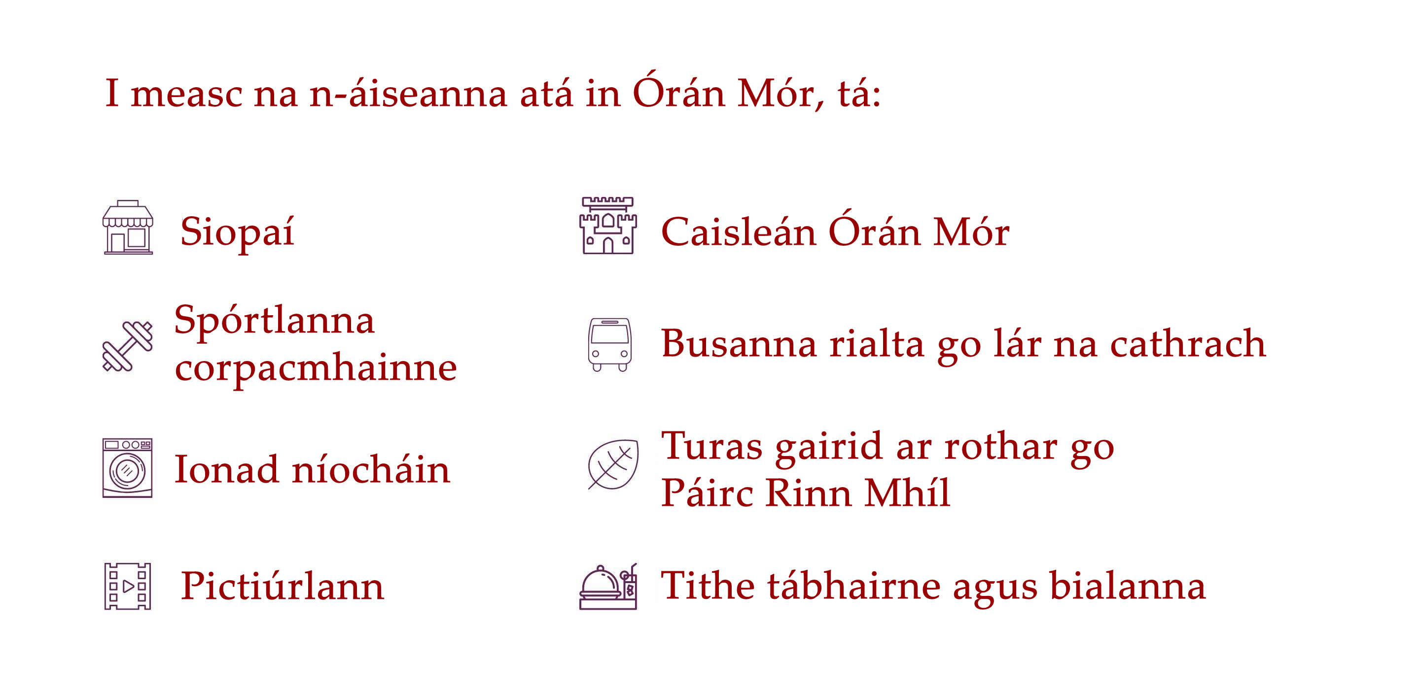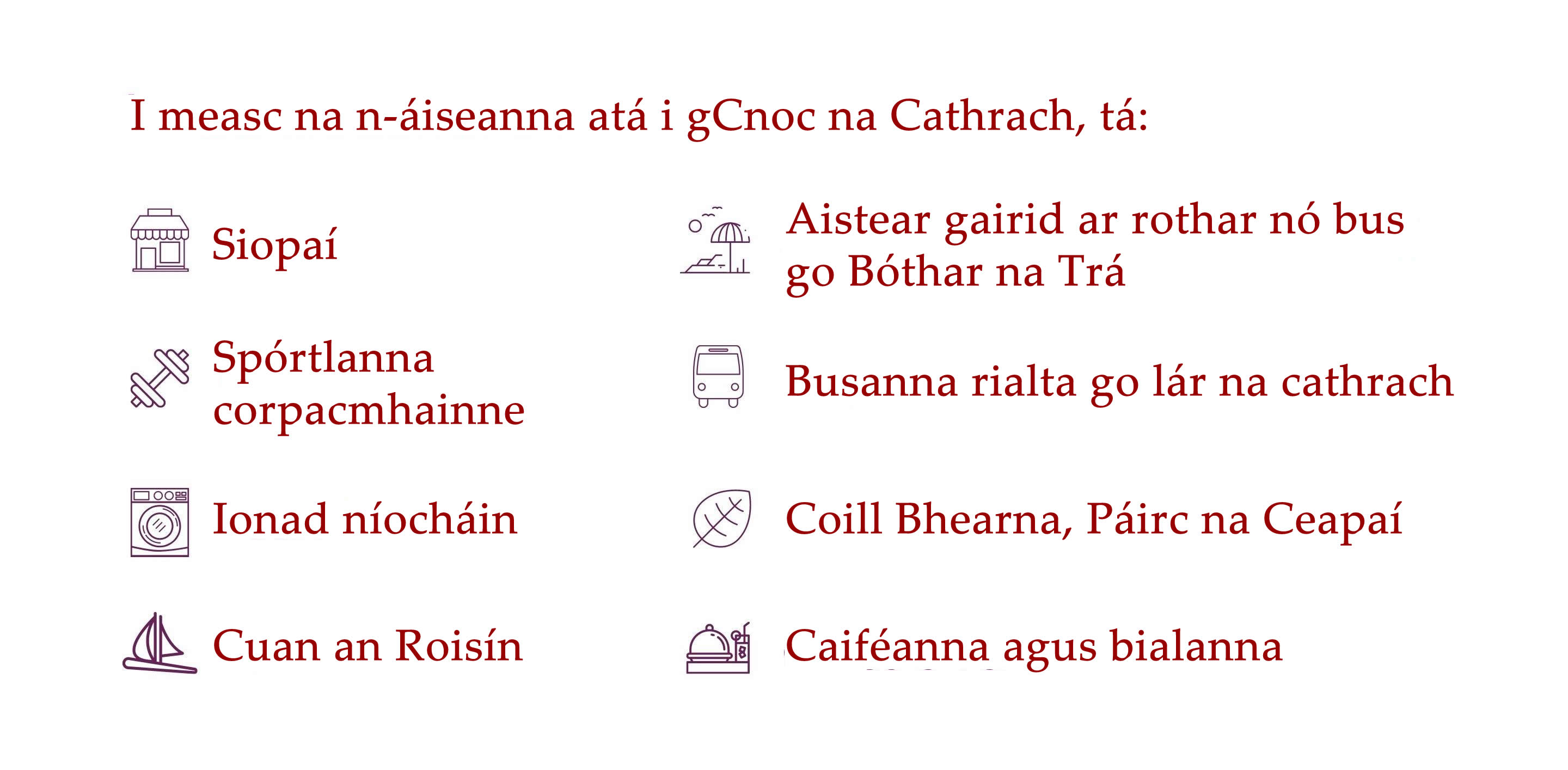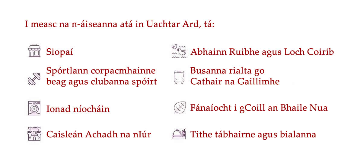 Tá níos mó eolais faoi limistéir lóistín na Gaillimhe le fáil thíos.