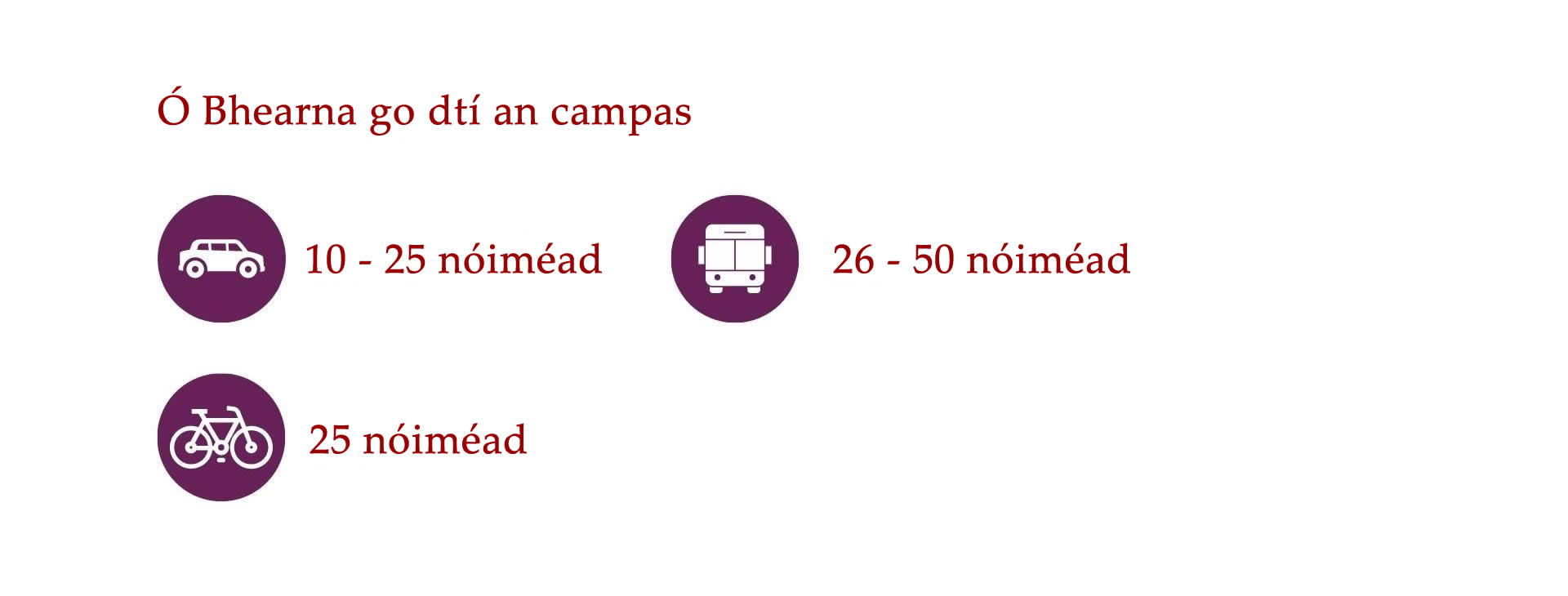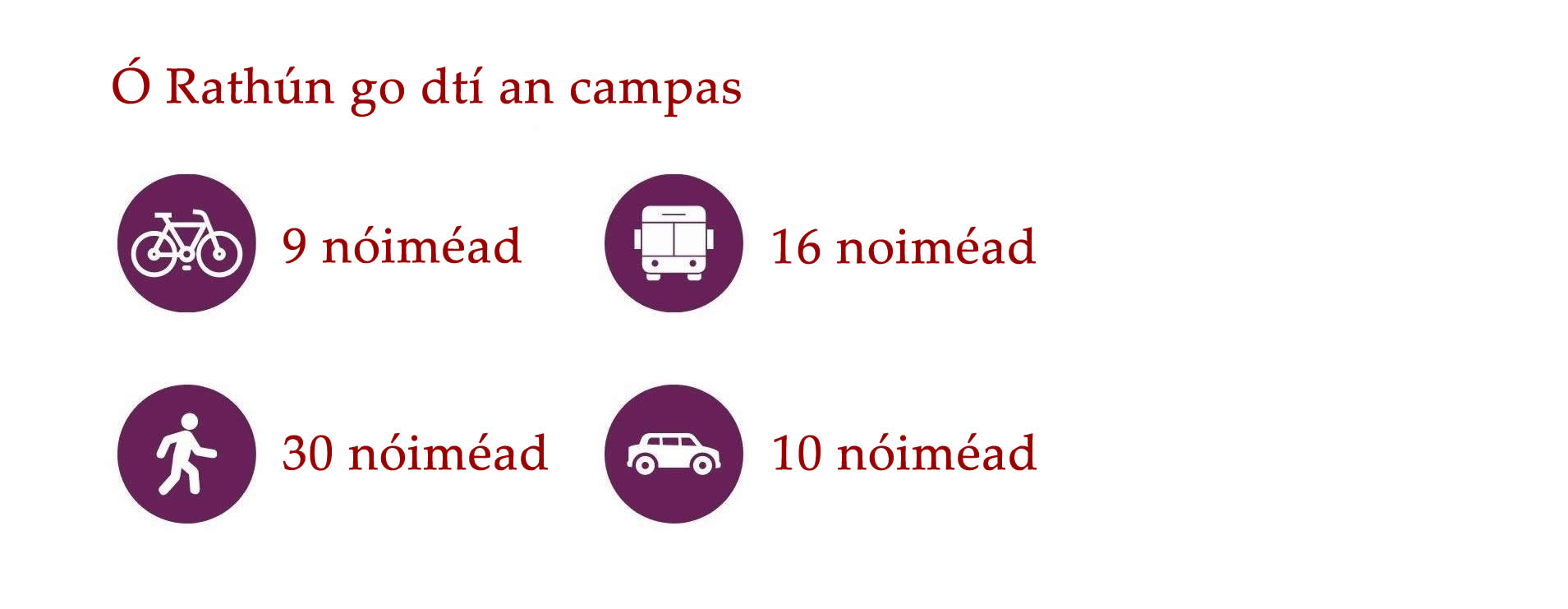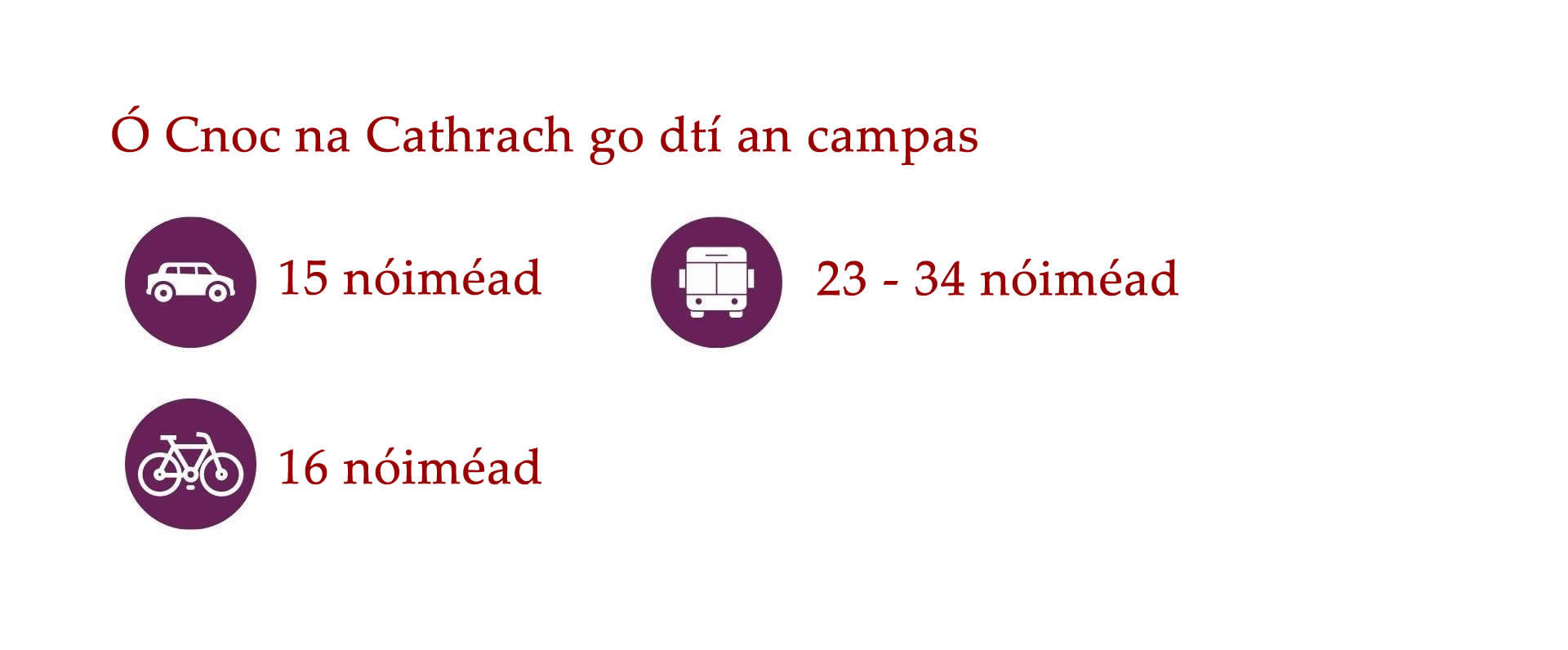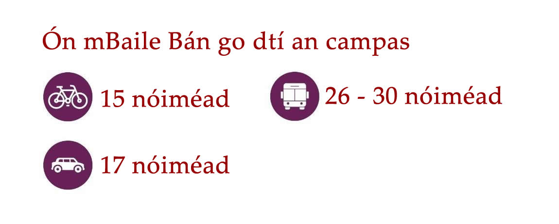 Cé go bhfuil an-éileamh ar thithe i nGaillimh, tá roghanna éagsúla ar fáil do mhic léinn ar fud Chathair na Gaillimhe agus an cheantair máguaird. Is iomaí bealach bus ar fud na Gaillimhe agus traenacha chuig na ceantair máguaird. Is féidir leat rothar athláimhe a cheannach go háitiúil freisin nó rothair a fháil ar cíos TFI bikes.